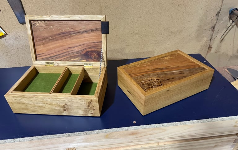Shapes, colours, textures, lids, hardware, there are so many combinations with boxes as well as different joinery and finishes. There is no need to make two the same.