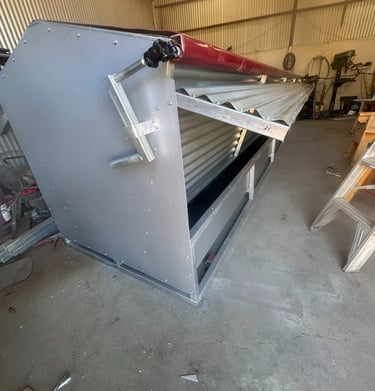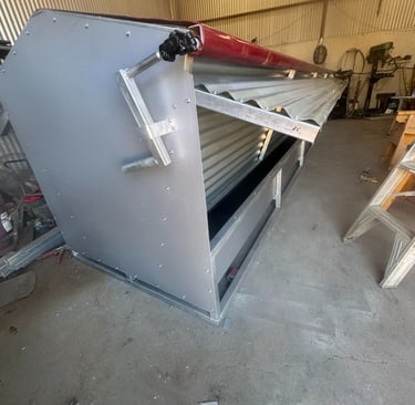 The current design with adjustable universal joint on handle and a tension cable on far end of rolltop to assist opening and closing it.
